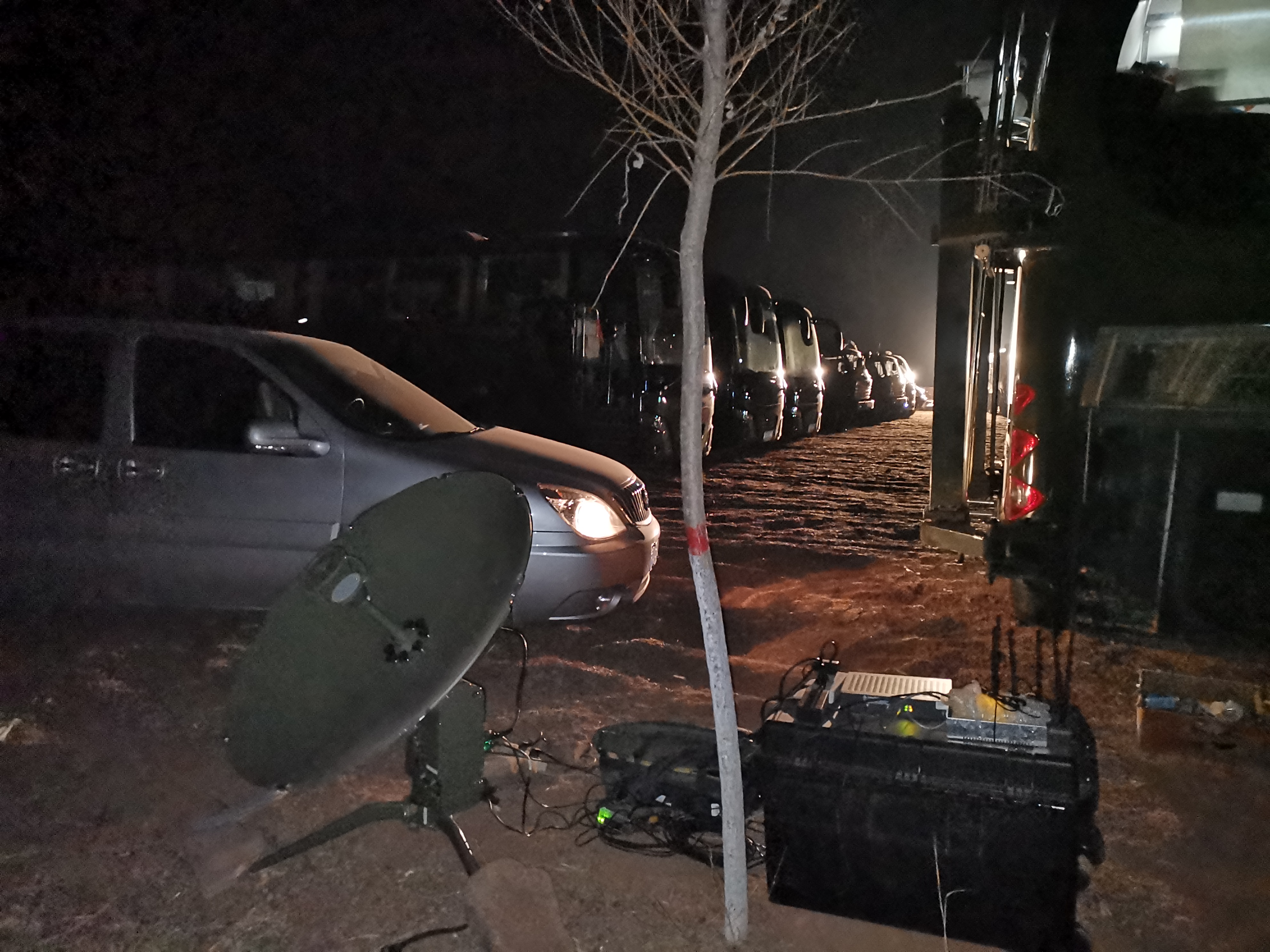 直升機(jī)與多媒體衛(wèi)星通信車待命中