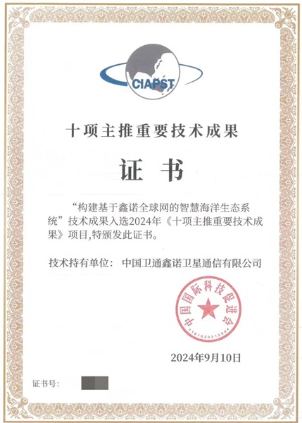 - 鑫諾公司入選中國國際科技促進會2024年《十項主推重要技術成果》項目