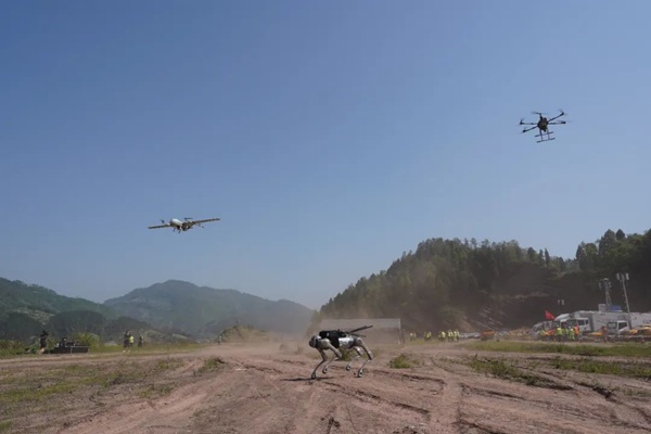本次演練全程模擬真實救災環境,創新的“空天地一體化協同組網”方案成為亮點。通過中型復合翼無人機、小型多旋翼無人機及電子機器狗等多種智能無人裝備設備,搭載高通量衛星通信終端、MESH自組網、全網通基站等通信載荷,在應急現場成功構建了多點中繼、冗余備份的立體傳輸網絡。